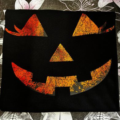 Pumpkin Face Shirt - Color Shifting Holographic Print- MAIN COLORS ARE Orange and Black