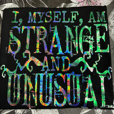 STRANGE AND UNUSUAL - Color Shifting Holographic Print- MAIN COLORS ARE GREEN AND SILVER
