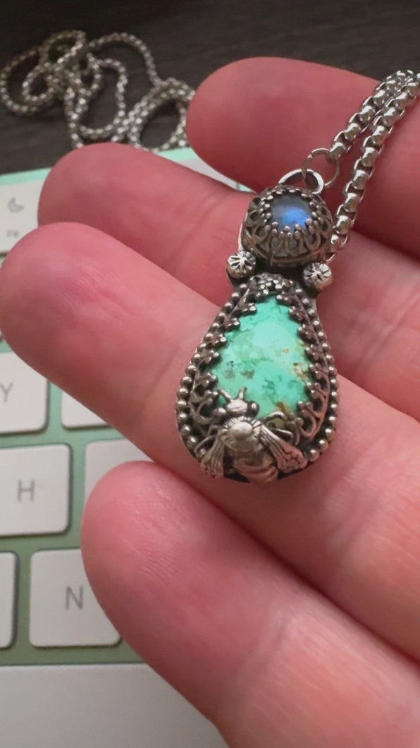 Sterling Silver Necklace, Turquoise Gemstone with bee A-4