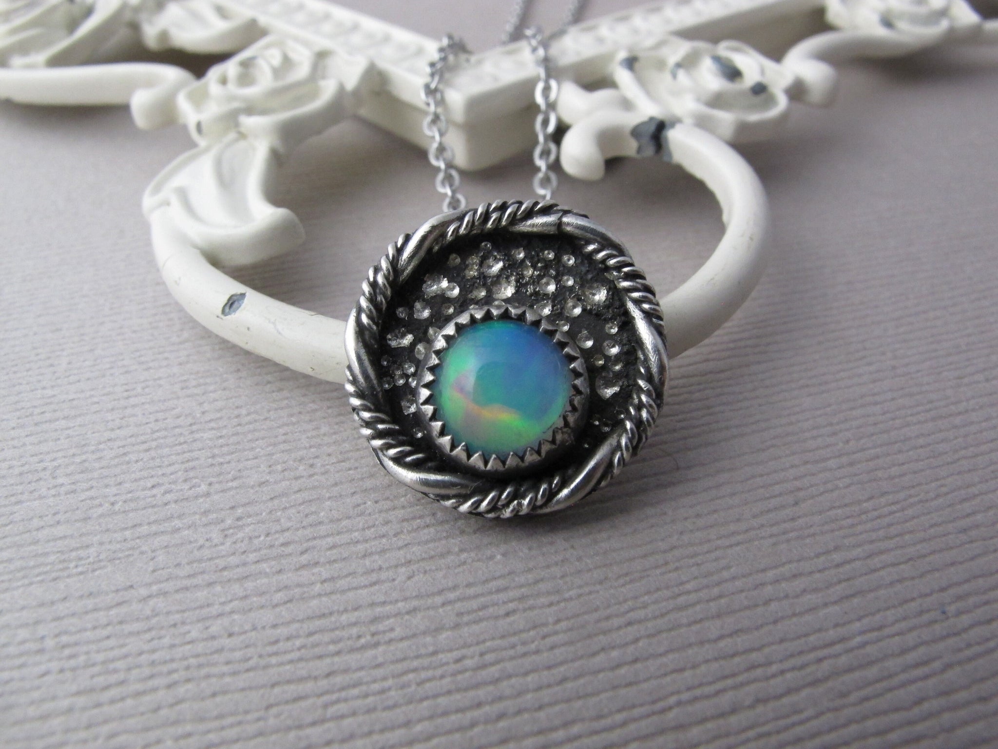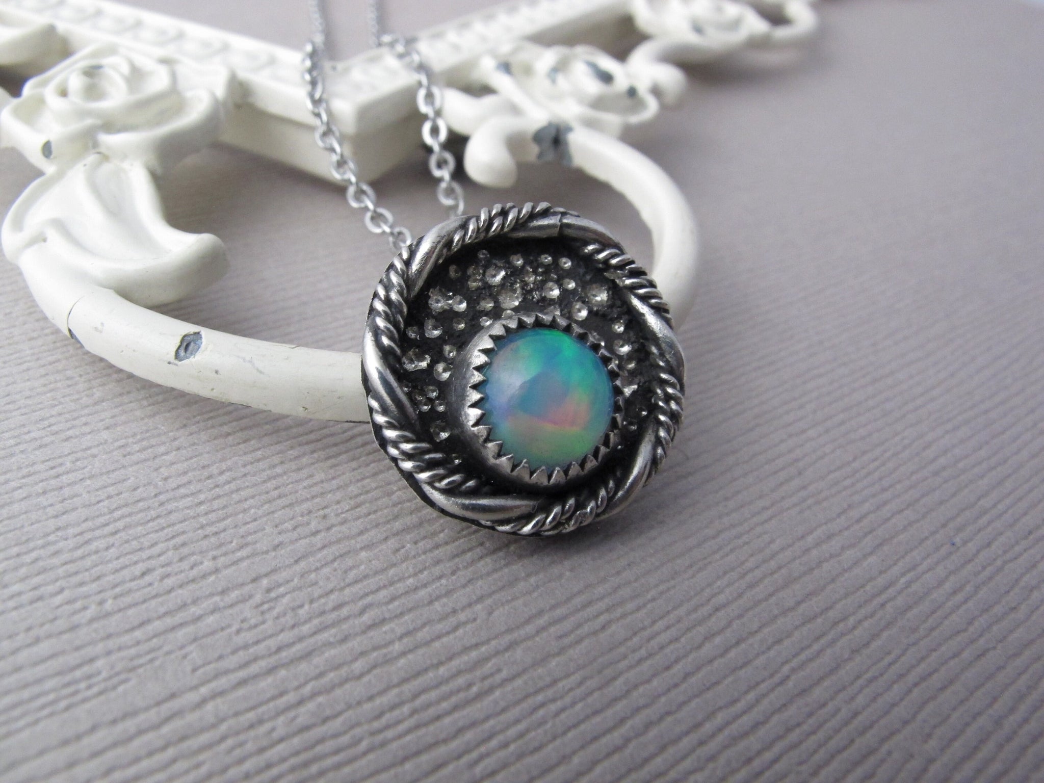 This daring Sterling Silver Opal Necklace features a Grade A opal set in pure 925 sterling silver, handcrafted with precision.