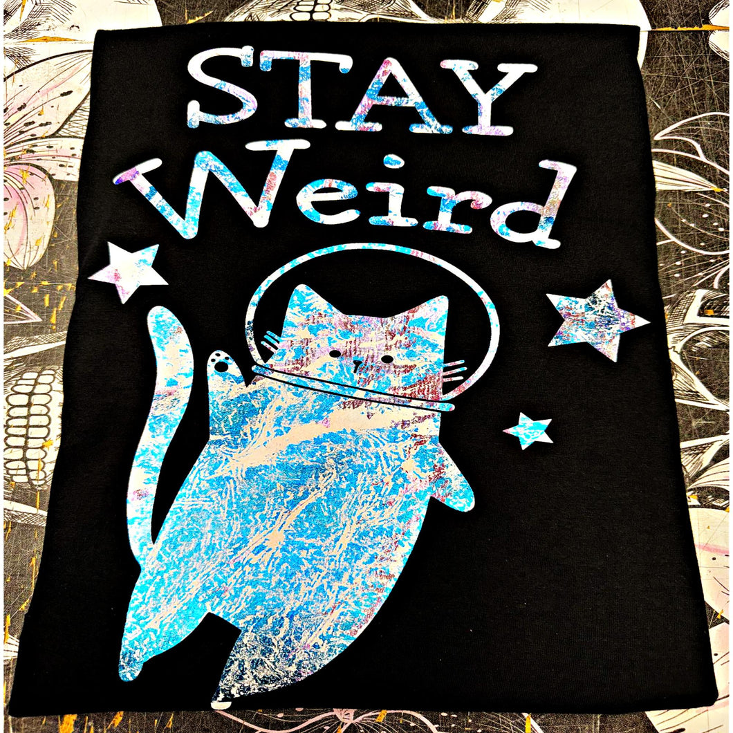 Stay Weird Holographic Shirt Apparel Womens Clothing - Unisex Fit - Screen Print Holographic B-97 Blue Purple Halo